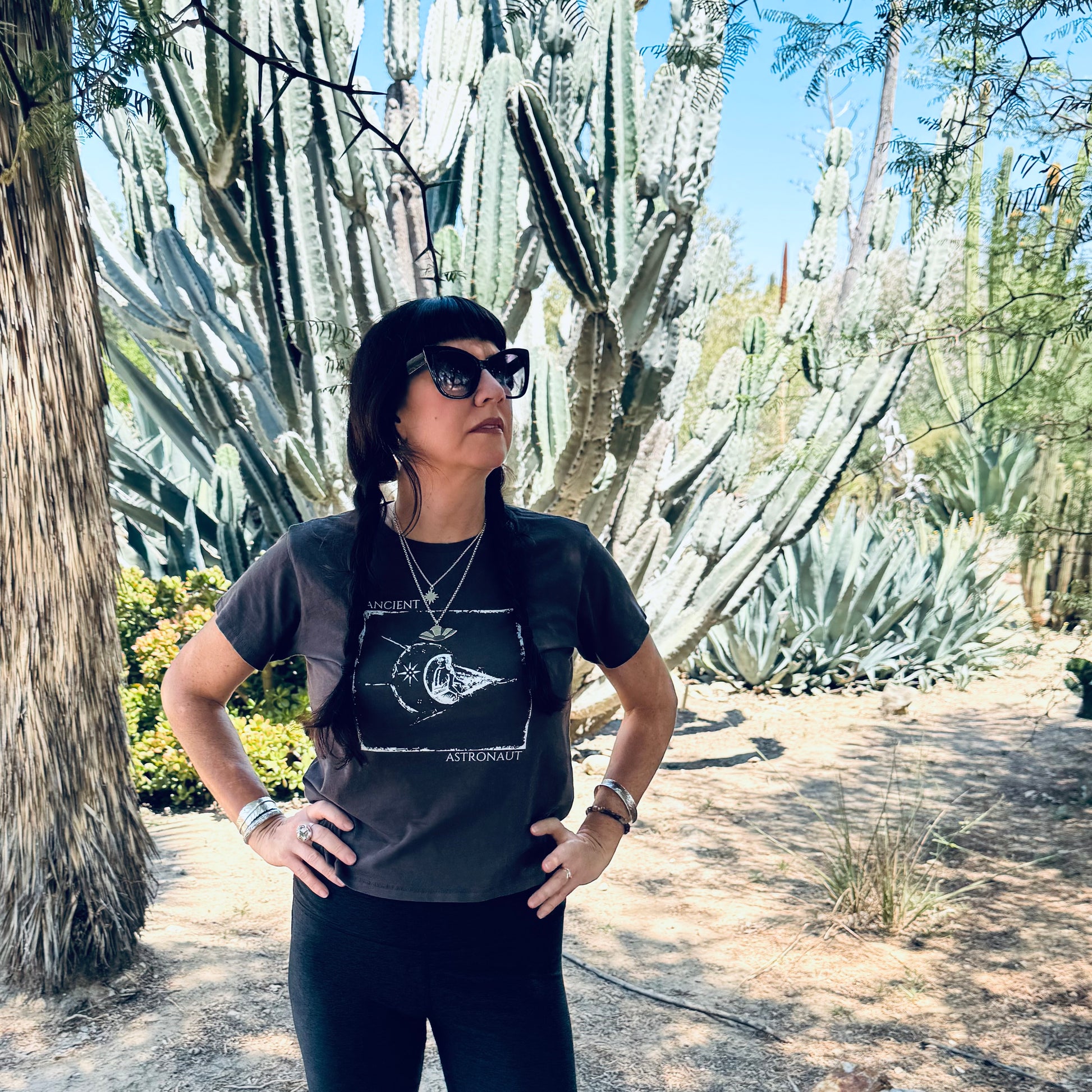 This high-waisted tee blends historic intrigue with cosmic curiosity.